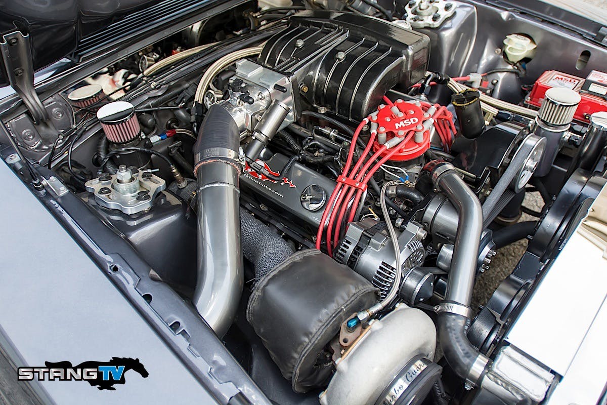 The Fox has undergone many transformations. “It has changed about 10 times,” Jim says. As it currently sits, the 302-cubic-inch engine is mated to a 6776 Precision turbo routing power down through a C4 transmission. Open the hood to Windsor senior heads, a 70mm throttle body, a SCT MAF meter, and Trick Flow Stage 1 camshaft all perfectly tied together with a tune by SCT. Added rumble and airflow is provided by a custom DynoMax Race Bullet mufflers.