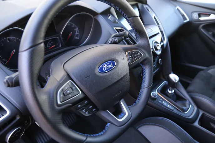 From the moment the Recaros embrace your hindquarters, you know this isn’t just any Focus. If you’ve spent any time in a base Focus or event he sporty Focus ST, the RS is familiar, but things are a big heightened. The Recaros are grippier, the shifter sharper, and when you push the start button, the exhaust burble is more robust.