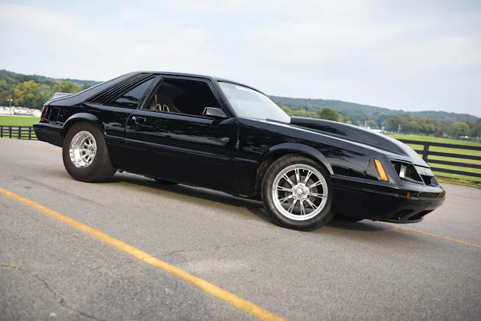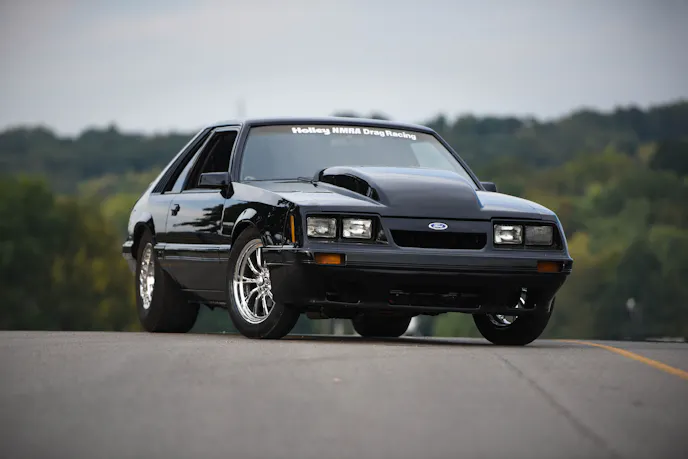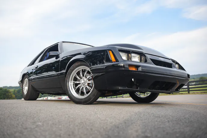 Mitchell’s beautiful black Mustang has been a lifelong dream project that he has had to patiently wait for. Mitchell knew he wanted a nice Mustang that he could cruise around the street and also run at the dragstrip. As a true blue-oval Ford guy, Mitchell’s daily driver was a clapped-out 1995 Ford Bronco…yes, O.J. Simpson-style. A bowling friend of his owned this 1985 Mustang GT hatch and was planning on doing a Coyote swap, but the project wasn’t taking shape. Mitchell continued to banter his friend to sell the car to him. Over and over again the answer was, “The car isn’t for sale.” Eventually, persistence prevailed and Mitchell’s buddy relinquished and sold him the car for $4,000, with one caveat: “Take this car and follow through with your street and strip Mustang goal.”
