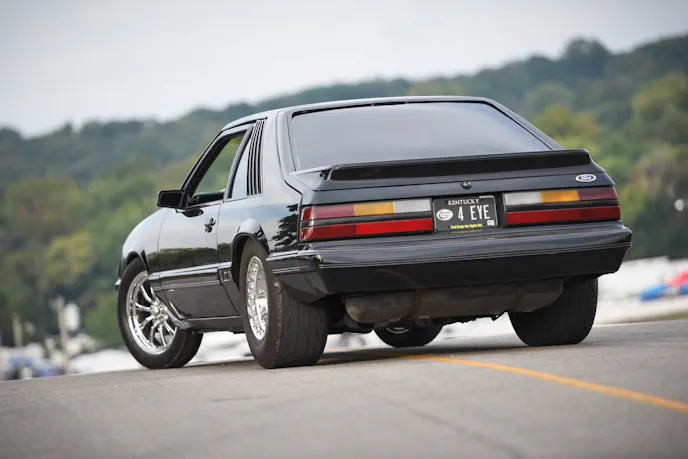 Why are you looking at Josh Mitchell’s clean 1985 Ford Mustang? It’s simply because Mitchell made a wrong turn. You see, Mitchell and his wife were cruising into the NMRA All-Ford World Finals featuring the Holley Intergalactic Ford Festival in Bowling Green, Kentucky last fall, and he was trying to find a way to slip in the gate to have a look around before the event officially began. He thought he had found a way into Beech Bend Raceway Park when he saw two gentlemen waving him over. But rather than waving him in the gate, those gentlemen were editors with FordMuscle looking to feature great-looking Fords. Mitchell’s Mustang clearly fit the bill. Unfortunately, this gate did not provide free access into the event and he was still going to have to buy a ticket.