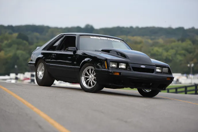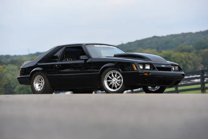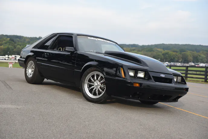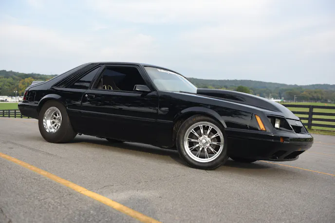 Mitchell’s beautiful black Mustang has been a lifelong dream project that he has had to patiently wait for. Mitchell knew he wanted a nice Mustang that he could cruise around the street and also run at the dragstrip. As a true blue-oval Ford guy, Mitchell’s daily driver was a clapped-out 1995 Ford Bronco…yes, O.J. Simpson-style. A bowling friend of his owned this 1985 Mustang GT hatch and was planning on doing a Coyote swap, but the project wasn’t taking shape. Mitchell continued to banter his friend to sell the car to him. Over and over again the answer was, “The car isn’t for sale.” Eventually, persistence prevailed and Mitchell’s buddy relinquished and sold him the car for $4,000, with one caveat: “Take this car and follow through with your street and strip Mustang goal.”