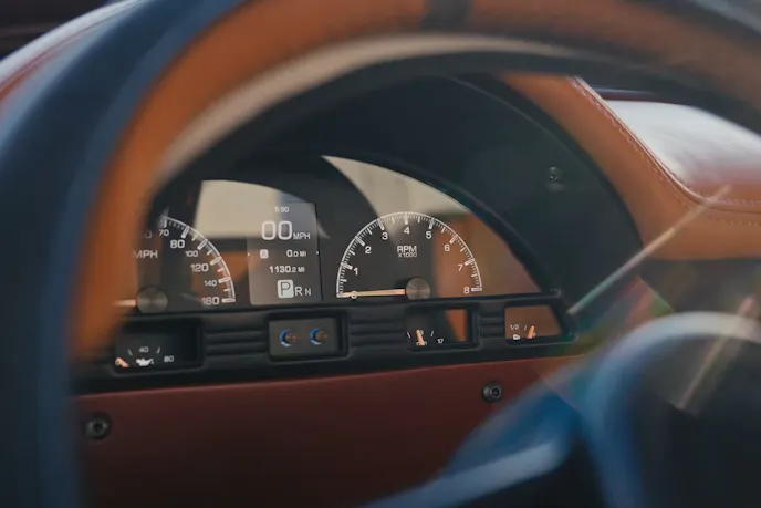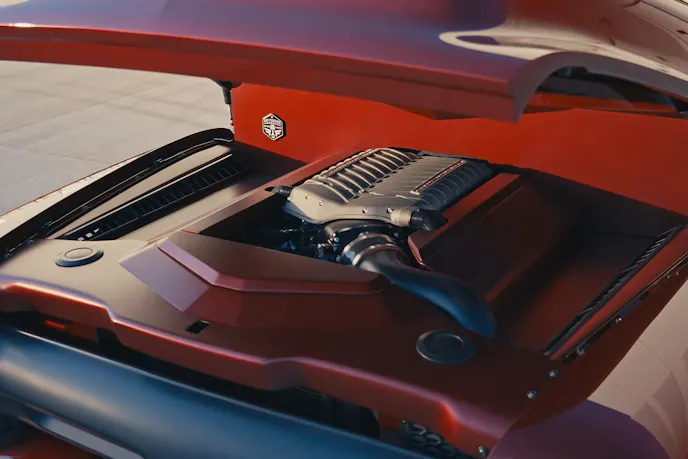 This power comes from a 5.0-liter Coyote V8 engine, boosted by a 3.0-liter Whipple supercharger. While potent, the engine bay was designed for a clean aesthetic. “Rather than having this massive looking engine under here…” Noel explained. “We really wanted it to be nice and clean and just really simple…less is more in this environment.”
