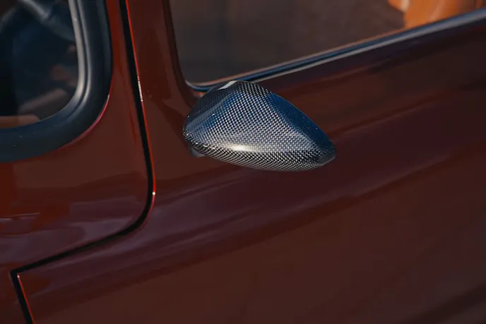 Other exterior details include custom AG Wheels, carbon fiber mirrors, Cerakoted billet door handles, and a custom backside with integrated taillights and a billet exhaust outlet. A mahogany wood bed floor also added a touch of classic warmth.