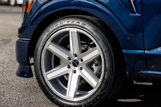 The F-150 shed its four-by-four ride height status by being lowered 3 inches in the front and 5 inches in the rear with a Viking Performance coilover kit from VAS. The suspension also includes Firestone air bag kits with an on-board air compressor. Rounding off the exterior are a set of 22-inch Giovanna Dramuno-6 wheels wrapped in Goodyear rubber.