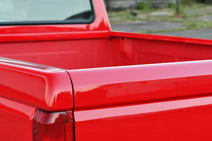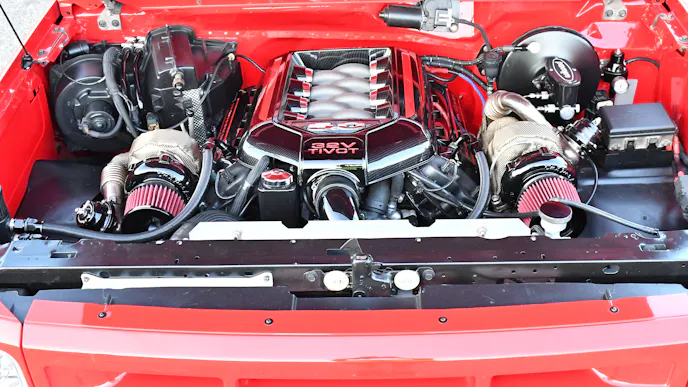 “Visual FX painted it in stages over the course of 6 to 7 months,” Newman said. “We started with the cab in January of ‘23, then the doors and hood a few months later—the front end stuff and the bed was last. As I was building the truck, we would rotate parts.” After the luscious red hue was clear-coated and buffed, the final touch was a pair of aftermarket carbon fiber fender badges.