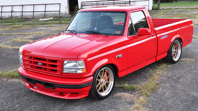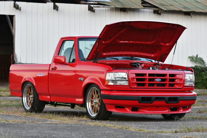 “My first Lightning when I enlisted was a red ’95, and it was stolen and totaled,” he explained. Both of the trucks in the deal, one red and one black, were ’93 models. The red one was a rolling chassis, while the black one needed a few small fixes to get it back up and running. Newman sold the latter to a good friend and began work on the red one in February of 2022.