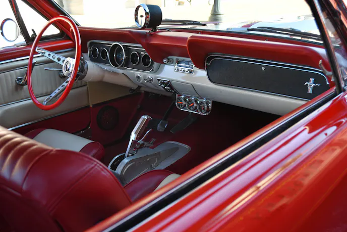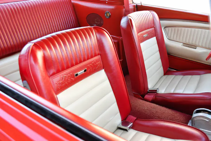 With the car now running, it was time to paint the finished body. Although Olivia initially planned on a white and blue combination, she had a change of heart when it came time to buy the paint. The winning combo ended up being Rangoon Red with Wimbledon White stripes, giving off classic vibes in a fashion that hasn’t been oversaturated in the 1960s Mustang market. The car was now a driver and finished just in time — one month before her 16th birthday. However, the car’s journey was far from over.