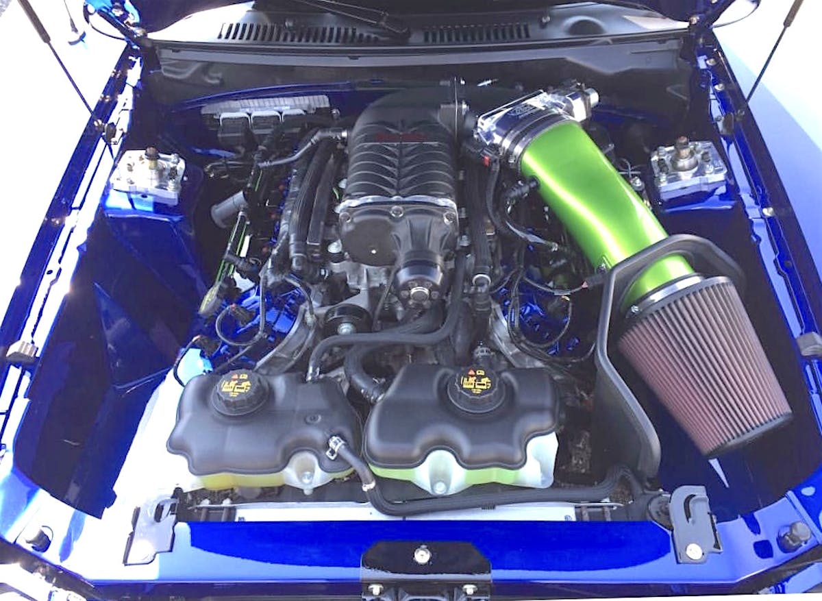 Engine: Edelbrock E-Force supercharged Coyote crate motorIntake: Edelbrock intercooled lower