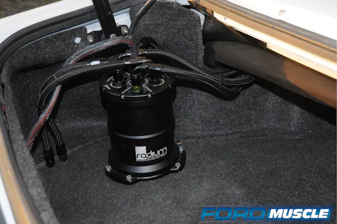 Fuel System: Aeromotive 340 in-tank pump w/ Radium Engineering surge tank fitted with two Walbro 450 pumps
