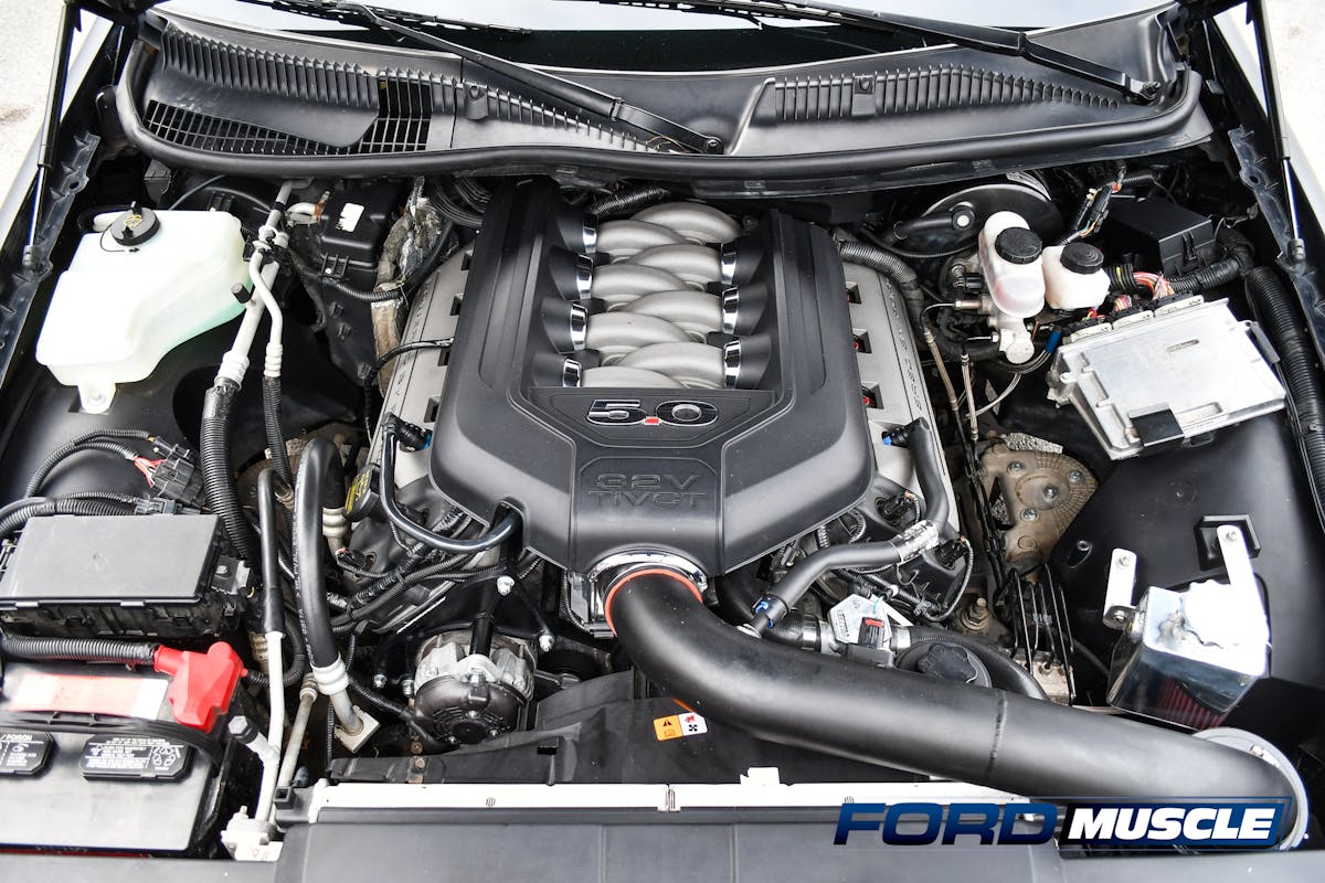 With the engine bay empty, the new powerplant was ready to be installed. Jewell’s idea was to modernize his four-door beauty, so a Coyote motor was sourced. The fitment of the Coyote in the engine bay makes it appear factory spec. Of course a manual transmission was chosen to row gears behind the 5.0-liter Ford. The only caveat was the loss of leg room for the jumper seat passenger due to the new shifter. However, with four other seats to choose from, I think they’ll find a new seating area with no problem.