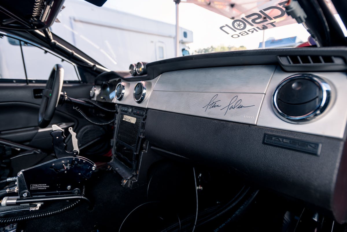 You always need a good set of wheels and tires to compliment any car. Chris opted for a set of Holeshot Revolvers with double bead-locked rears wrapped in Mickey Thompson rubbers on all fours. Stopping power is provided by Baer racing SS4+ drag brakes. The inside of the car remains much like it was from factory, too include the hand sign dash from Steve Saleen. In addition to the SFI 25.3 roll cage, a dual halon fire system was added to include all other NHRA safety requirements.