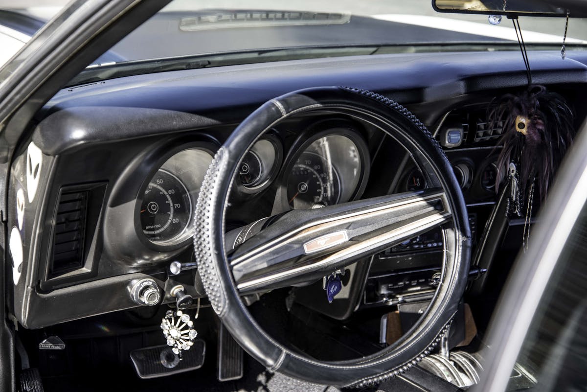 The interior is going to be treated to an all-leather overhaul in Mach 1 style. “It’s not going to be cheap, but it will be worth it,” Derek said. “I want to keep the clusters stock, but I’m going to take it back to Mobile Music and get the interior lighting updated so that you can see it better.”