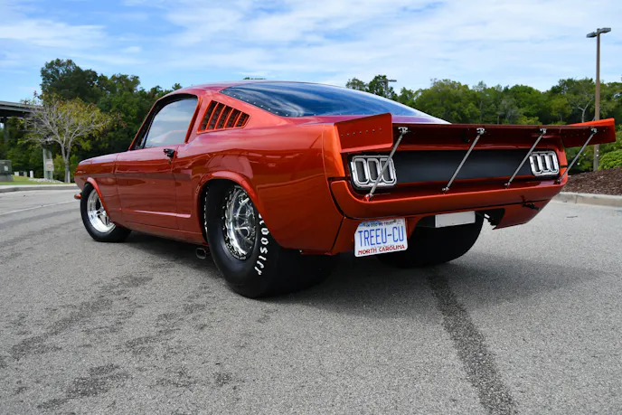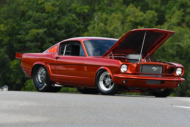 Now, there is a growing trend of owners converting their former drag race cars into streetable machines. These retired racers still pack serious power under the hood and retain the traditional look, but the quality of craftsmanship has skyrocketed, with special attention to body, paint, and drivability. Phillip Tarlton’s 1965 Mustang has reset the standard for what a proper Pro Street should be and the photos alone don’t do the car justice.