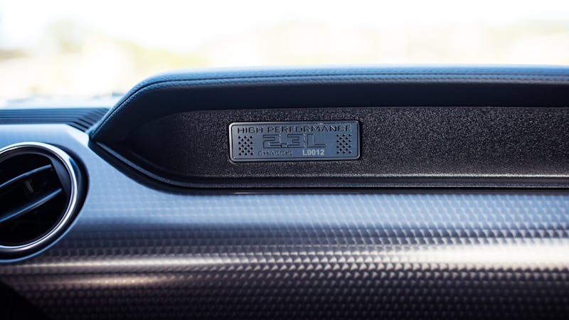 What sets the High-Performance Package apart from the base EcoBoost Mustang is its engine. The inspiration came from a Dearborn skunkworks project that saw Ford engineers drop the four-banger from a Focus RS test mule into a Mustang chassis.