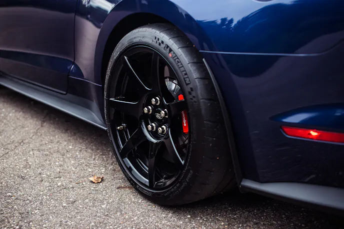 Visual differences that set the GT350R apart from the GT350 include red-painted brake calipers, red pinstriping, and Shelby GT350R badging. Carbon fiber wheels come standard on the GT350R, in addition to a larger front splitter and rear wing.