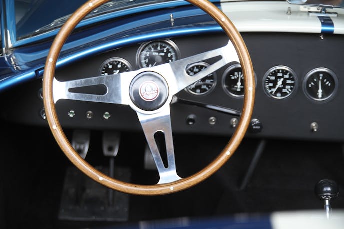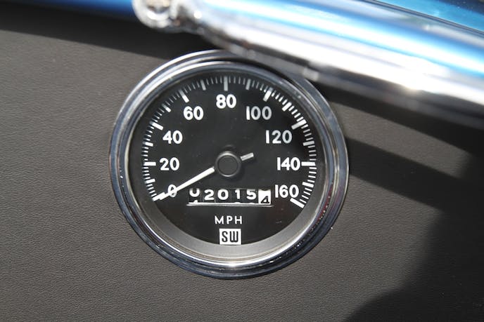 The first issue was the Cobras didn’t have speedometers — a requirement by the FIA. So Shelby, after a lost protest and in an almost defiant tone, fitted a speedometer on the passenger dashboard. This was almost completely out of sight to the driver, but it passed. The continuation model also sports a speedometer on the passenger side. Undoubtedly, this adds to the whole “fearless driver/terrified passenger” as a squeamish rider may find himself looking wide-eyed with knowledge of the three digit speeds…