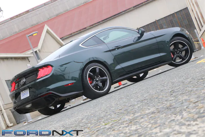 The result is a styling that is reserved, but still stands out from the crowd. It begins with a blacked out grille and chrome trim around the grill and side windows. That carries to the black wheels with machined lips right down to the blacked out exhaust tips. Available in either Highland Green inspired by the movie car or black, inspired by the popularity of black-on-black Mustang GTs ordered with all the options.