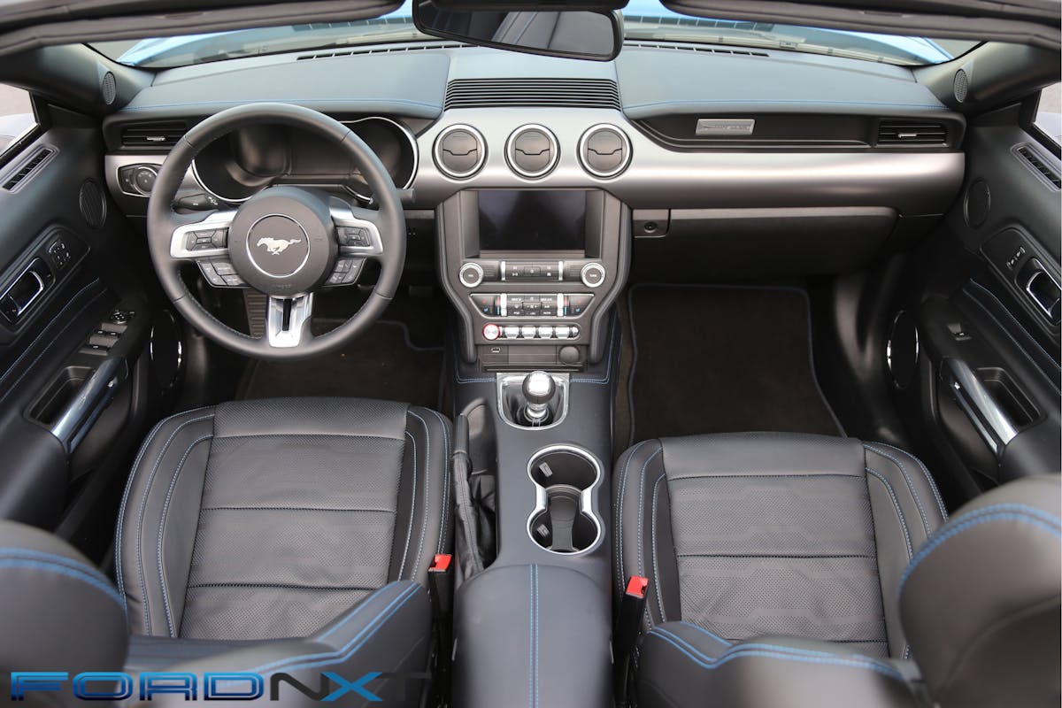 The leather interior featured blue stitching accents, which tied in the exterior color into the cockpit and classed up the joint. The navigation’s SiriusXM travel link proved quite useful avoiding the biggest bottlenecks on the road, but I neglected to sample Waze via CarPlay, so that is on the list for the next Mustang I drive. Thanks to the match-rev downshift technology added to the latest MT-82 six-speed manual, this car is even more fun to drive — even in SoCal traffic.