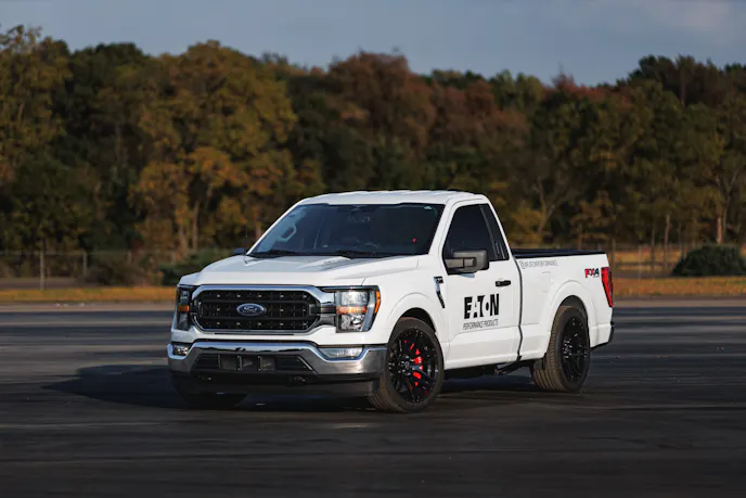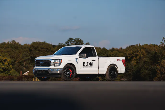 “The regular cab, short-bed Ford F-150 has surged in popularity among performance enthusiasts and custom builders over the last several years, and we identified this as a space we could play in,” Scott D. Kennedy, Proving Grounds Campus Manager, Mobility Group at Eaton, said. “The RCSB configuration provides a retro street truck look, reminiscent of the late ’90s, early ’00s sport trucks like the Ford SVT Lightning, which proudly featured Eaton supercharger technology.”