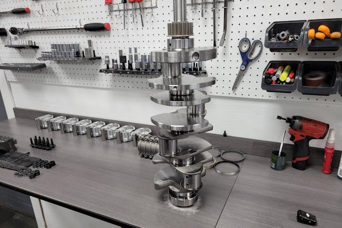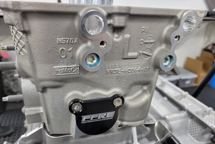 The foundation of FFRE’s build is a Gen 3 5.0-liter Coyote block reinforced with LA Sleeves. Sleeving is critical here as 25-plus pounds of boost can cause the thin factory liners to flex, resulting in power-robbing sealing issues. By upgrading to these ductile-iron sleeves, FFRE ensured the bores remain round and the ring seal stays snug, which will translate to both more efficient combustion on the dyno and less oil consumption during the real-world phase of the challenge.
