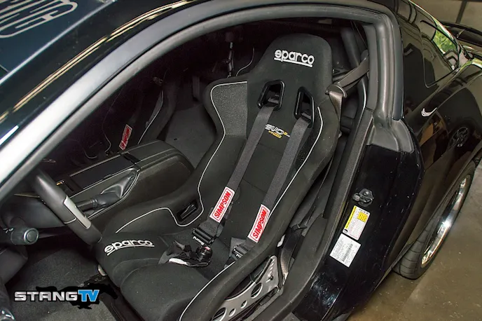 “Our approach is always safety, good brakes and handling,” explains Faessler, “Once those three things are accomplished then we can move to the engine and get to work on increasing power.” Following closely to this tried and true strategy, the first pieces of the puzzle were the Maximum Motorsports four-point safety cage, Ford Racing rear seat delete with brace, Sparco racing seats, and finally a Simpson seven-point harness.