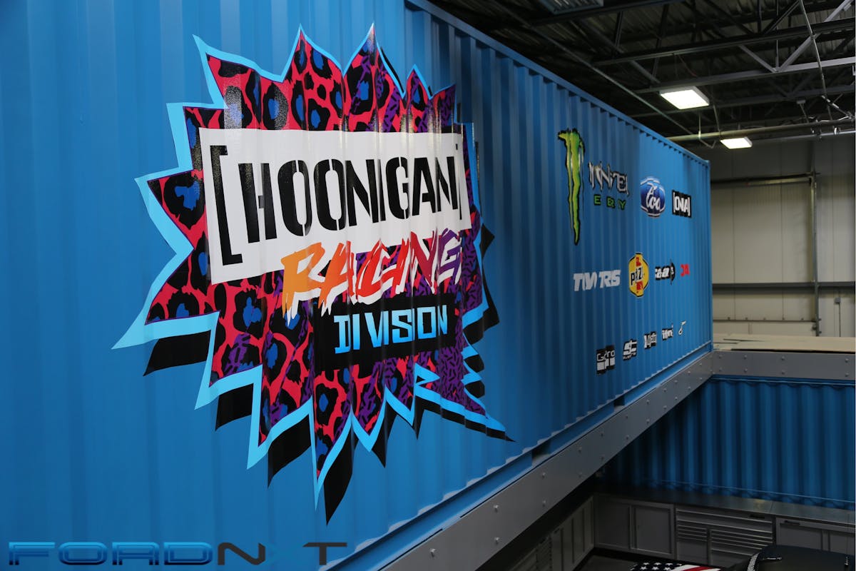 While whipping through the hills around Park City, Utah, we made a quick pit stop to grab a Monster Energy drink before finishing the drive. This was no convenience store we stopped at, however. We stopped and the house that Ken Block built — Hoonigan Racing Division. Sadly the head Hoonigan wasn’t around, but we were able to check out the operation that keeps his rally racers in top shape and ensures those Gymkhana videos keep dazzling the Internet. It looks like a fun place to work, and the shipping container motive looks great, but is a nod to efficiency. While running DC Shoes, Ken learned that moving is expensive. Using the containers as offices, conference rooms, and even, bathrooms, let’s Hoonigan pull up stakes quickly and affordably should the need arise.