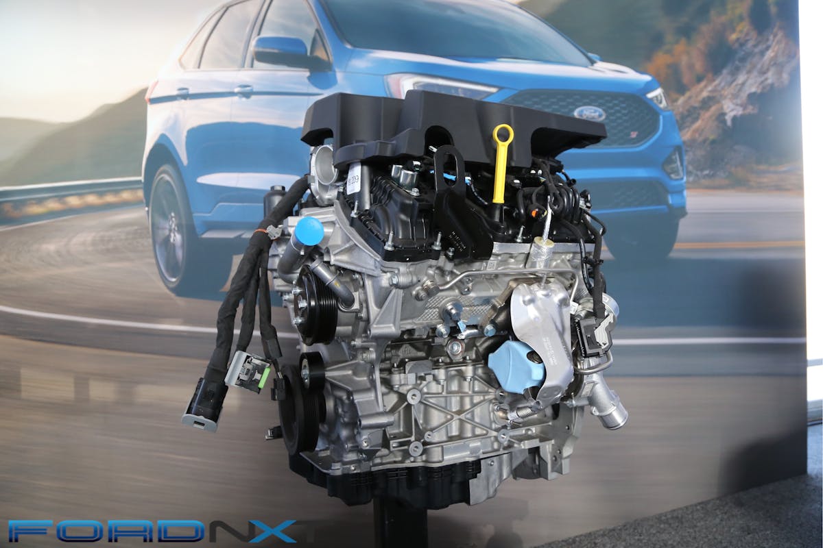 With the exception of a block design for front-/all-wheel drive applications, the 2.7-liter EcoBoost engine is essentially the same engine found in the F-150. However, this one is controlled by a unique calibration and is exclusive to the ST in the Edge lineup. It delivers 335 horsepower and 380 lb-ft of torque while maintaining EPA-estimated fuel economy ratings of 19 MPG city/26 MPG highway and 21 MPG combined. (Photo Credit: Steve Turner)