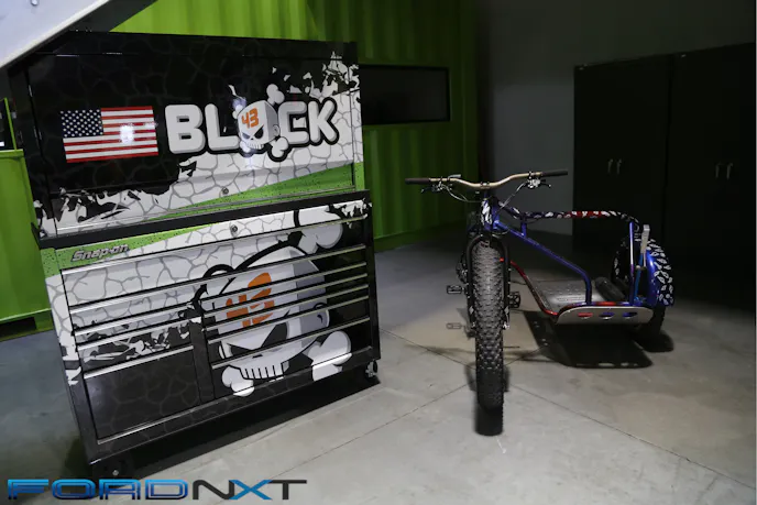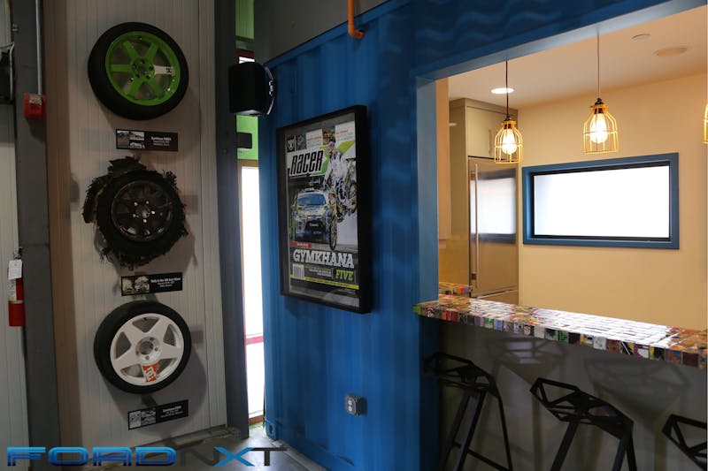While whipping through the hills around Park City, Utah, we made a quick pit stop to grab a Monster Energy drink before finishing the drive. This was no convenience store we stopped at, however. We stopped and the house that Ken Block built — Hoonigan Racing Division. Sadly the head Hoonigan wasn’t around, but we were able to check out the operation that keeps his rally racers in top shape and ensures those Gymkhana videos keep dazzling the Internet. It looks like a fun place to work, and the shipping container motive looks great, but is a nod to efficiency. While running DC Shoes, Ken learned that moving is expensive. Using the containers as offices, conference rooms, and even, bathrooms, let’s Hoonigan pull up stakes quickly and affordably should the need arise.