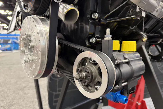 The Innovators West crank damper is another game-changer. It shortens the front-end package by two inches compared to stock setups, aligning perfectly with the hub-mounted drive for the oil pump. This keeps accessories like the alternator, power steering, and air conditioning in their original positions, making the upgrade as seamless as it is powerful.
