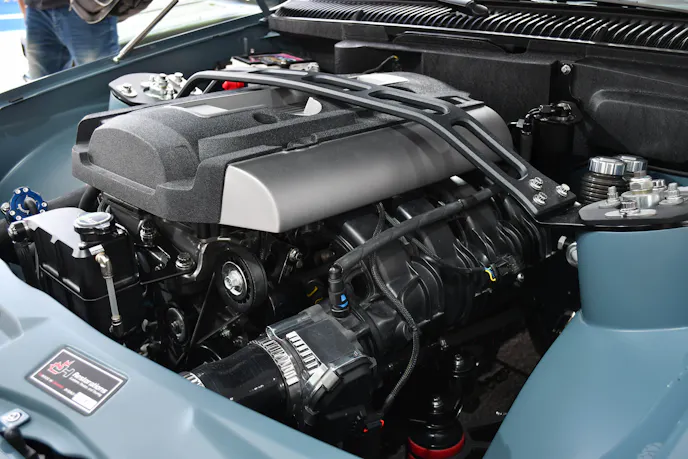 Rather than searching for elusive products or custom-producing engine components for an outdated engine, the team opted for a Ford Performance 2.3-liter EcoBeast engine. This engine was not only fortified by Ford but also equipped with an upgraded Ford Performance turbo setup. A 3-inch stainless steel exhaust provides the Merkur with a deep exhaust note and the ability to exhale with ease. .