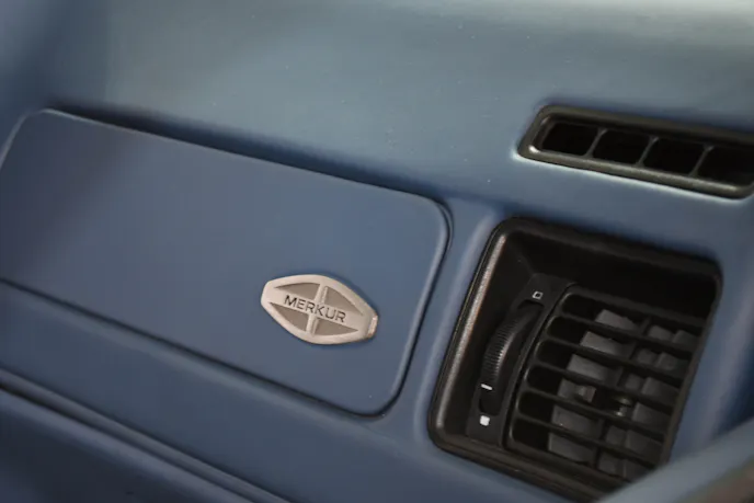 Inside, modern Recaro seats were installed, not only to evoke the look and feel of the 80s but also to adhere to modern safety standards by providing physical restraint for the driver. The timeless Recaro aesthetic extends throughout the interior, featuring premium leather and classic Recaro cloth inserts. While the Merkur’s dash remains functional and fully optional, a few gauges monitoring engine parameters have been replaced with a set of custom-designed and engineered Dakota Digital Instruments, guiding your eyes to the more essential details.