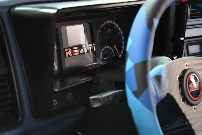 The exterior underwent a transformation, with the front bumper being the first element to captivate attention with its RS500-styled look. Custom wide-body flares and a modified hood were meticulously sculpted with a specific purpose in mind – lowering the car without compromising on-track performance. The finishing touches include Euro-spec one-piece rear side glass and an updated biplane rear wing. Once the car reached completion, it was adorned in Ford’s Area 51 Blue from BASF Automotive Refinishing products.