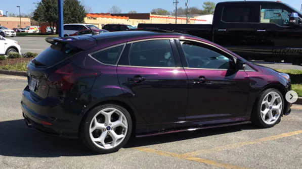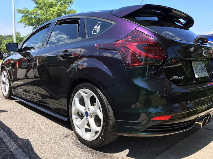 “The car’s original color was Tuxedo Black,” Jennifer said. “When we started to realize that the black paint was accumulating a lot of rock chips from the harsh Virginia roads, we decided it was time to take that step and make our Focus ST truly unique.”