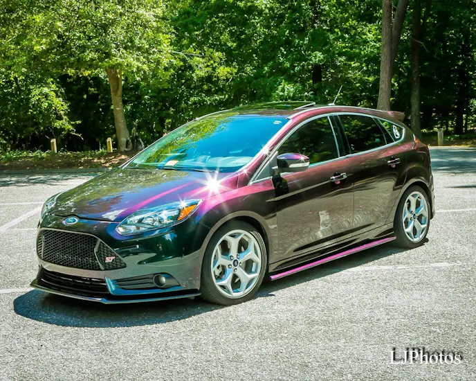 John and Jennifer’s 2014 Focus ST build really is a unique build. Instead of focusing their build on big power upgrades, the husband and wife team focused their build on the vehicle’s Mystic paint, which is difficult to find these days.