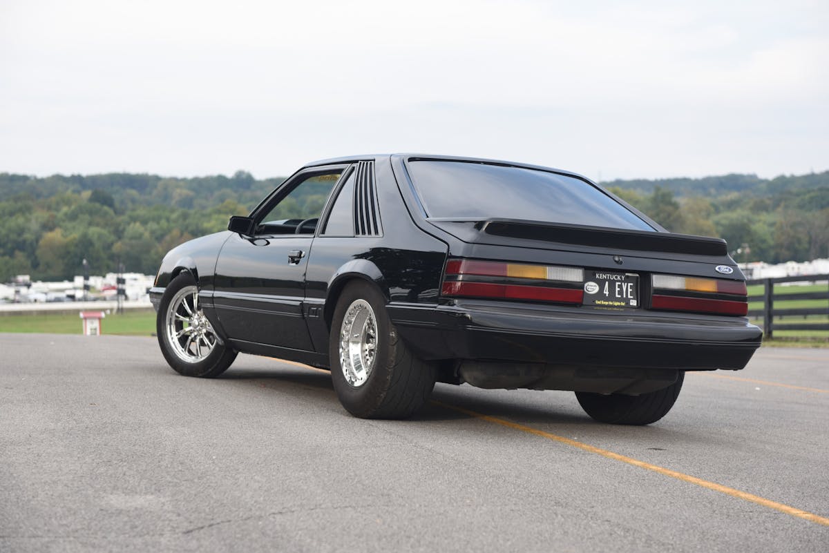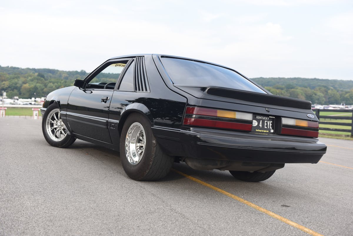 Mitchell’s beautiful black Mustang has been a lifelong dream project that he has had to patiently wait for. Mitchell knew he wanted a nice Mustang that he could cruise around the street and also run at the dragstrip. As a true blue-oval Ford guy, Mitchell’s daily driver was a clapped-out 1995 Ford Bronco…yes, O.J. Simpson-style. A bowling friend of his owned this 1985 Mustang GT hatch and was planning on doing a Coyote swap, but the project wasn’t taking shape. Mitchell continued to banter his friend to sell the car to him. Over and over again the answer was, “The car isn’t for sale.” Eventually, persistence prevailed and Mitchell’s buddy relinquished and sold him the car for $4,000, with one caveat: “Take this car and follow through with your street and strip Mustang goal.”