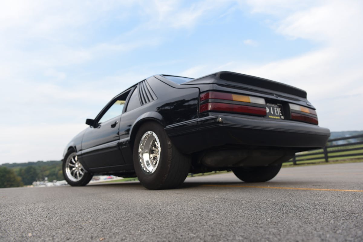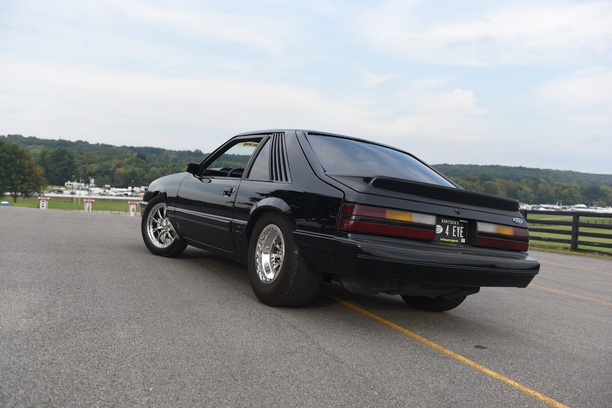 Why are you looking at Josh Mitchell’s clean 1985 Ford Mustang? It’s simply because Mitchell made a wrong turn. You see, Mitchell and his wife were cruising into the NMRA All-Ford World Finals featuring the Holley Intergalactic Ford Festival in Bowling Green, Kentucky last fall, and he was trying to find a way to slip in the gate to have a look around before the event officially began. He thought he had found a way into Beech Bend Raceway Park when he saw two gentlemen waving him over. But rather than waving him in the gate, those gentlemen were editors with FordMuscle looking to feature great-looking Fords. Mitchell’s Mustang clearly fit the bill. Unfortunately, this gate did not provide free access into the event and he was still going to have to buy a ticket.