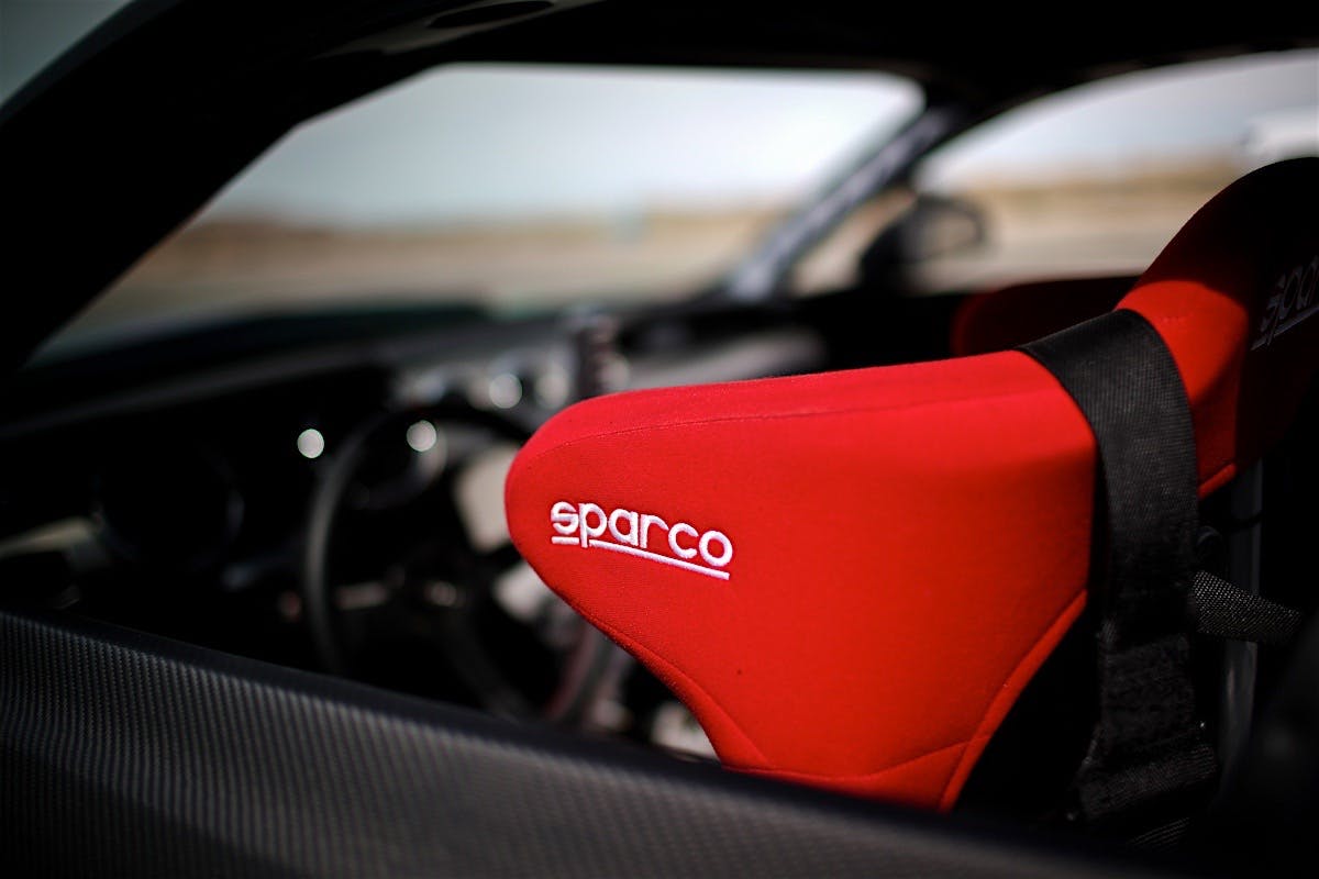 Moving inside the car, the fundamentals include seats, harnesses, and a steering wheel all made by Sparco. Auto Meter gauges and the exclusive Ford Performance control packs for engine management keep everything monitored and functioning properly.
