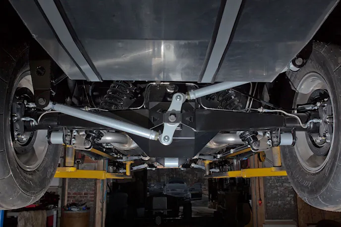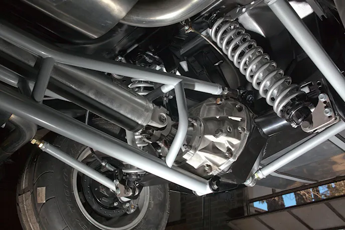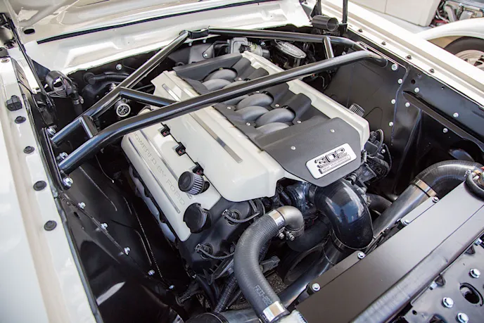 The goal from the beginning was to be Coyote-powered and equipped with a manual transmission. A mini tub and a new rearend followed shortly thereafter, as Lance and Chuck wanted to utilize a torque-arm-style rear suspension because of its versatility.