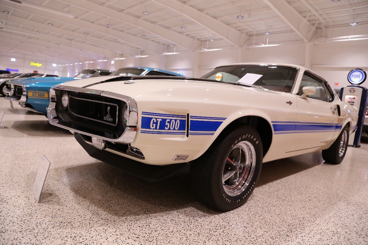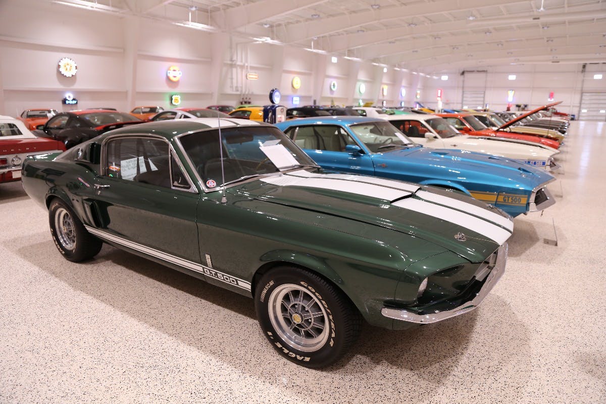 I have eight Ford GTs—one in each color produced.—Mark PielochIf you are lucky enough to pull in through the gate and park in one of the 10-foot-wide parking spots framed by massive solar-panel arrays, you are about to experience an amazing collection of vehicles. Pull open the front door of the American Muscle Car Museum and under the glow of LED lighting and neon signs are eight Ford GTs surrounding an original 427 Cobra, which may one day be swapped out for 2017 Ford GT.