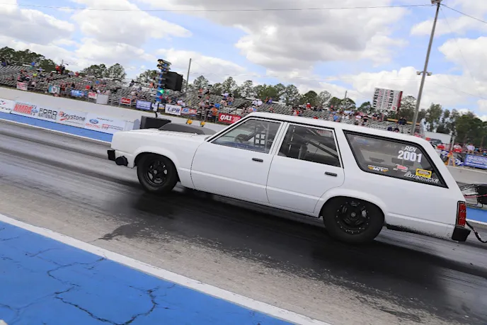 This is my first Mod-motor powered car, and it’s fun. – Austin HickmanCompeting in the Renegade class at this year’s NMRA season opener was Austin Hickman and his 1978 Ford Fairmont wagon. Austin is a self-proclaimed wagon aficionado, and for good reason.