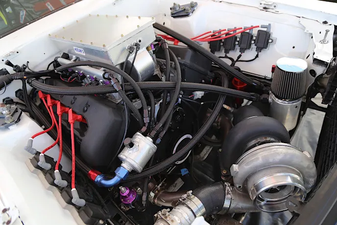 “The engine setup is a 4.6-liter 4V Mod-motor using Ford GT supercar cylinder heads,” Austin entailed. “It’s a 76mm turbocharged Renegade car, and it currently weighs about 3,225 pounds. I’ve owned the car for about three or four years now. I purchased the car from a friend named Bob. It was originally powered by a big-block Chevy engine, and I decided to use a Mod-motor for this car.”