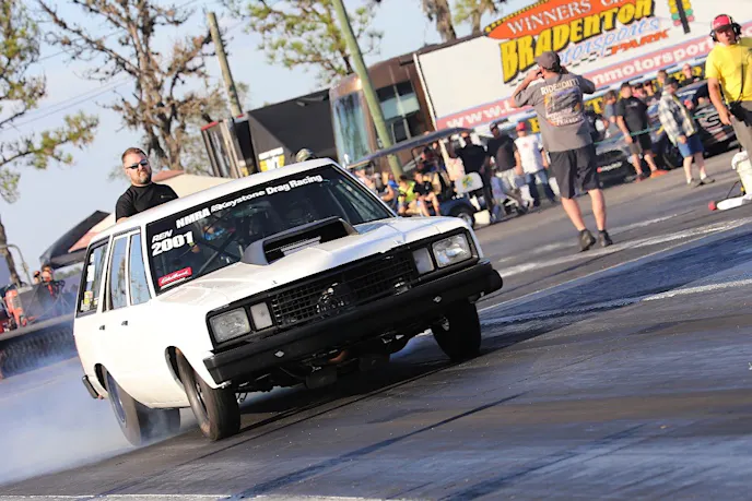 This is my first Mod-motor powered car, and it’s fun. – Austin HickmanCompeting in the Renegade class at this year’s NMRA season opener was Austin Hickman and his 1978 Ford Fairmont wagon. Austin is a self-proclaimed wagon aficionado, and for good reason.