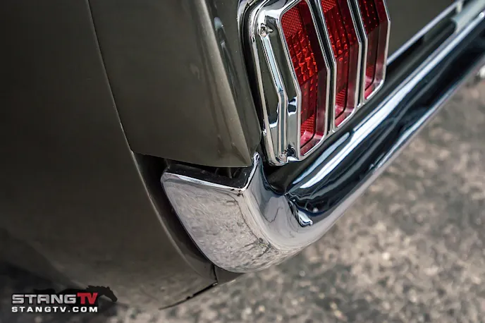 I love everything, but I really love the smell of the upholstery. I like to tell women that my upholstery smells better than their Coach purse.Glen told us that the Mustang was originally Emberglo Orange from factory. Wanting something more contemporary for this restomod build the car has since been painted Mercedes Pewter gray with a BMW shade of white used for the stripes. “The body appeared clean when I bought it, but the driver rear quarter panel had been hit. We didn’t find it until we soda blasted the body.”