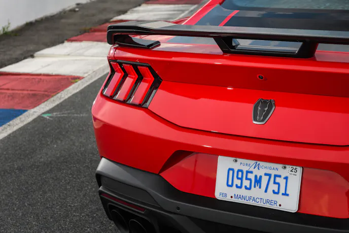 The moment there was a clear road, I stood on the loud pedal and things got louder in the best way. The exhaust note transformed from a booming rumble to a snarl that exemplifies the attitude of the first forward-facing horse badge to grace a Mustang model. The tone is courtesy of unique mufflers and tuning.