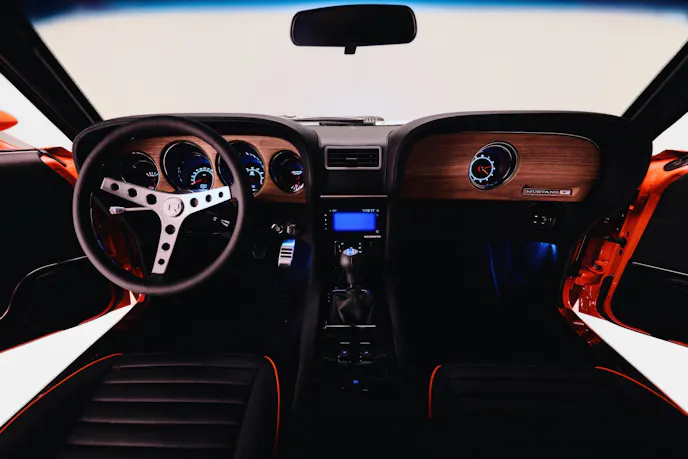 The foundation reflects that same philosophy. Every Revology Mustang is built on a new steel body engineered for improved rigidity, and this Boss 302 adds a modern suspension system with a double-wishbone front setup on an aluminum subframe and a three-link rear with a torque arm and Panhard rod. It’s a layout designed to deliver far more control and predictability than the original leaf-spring car, especially when driven with intent.