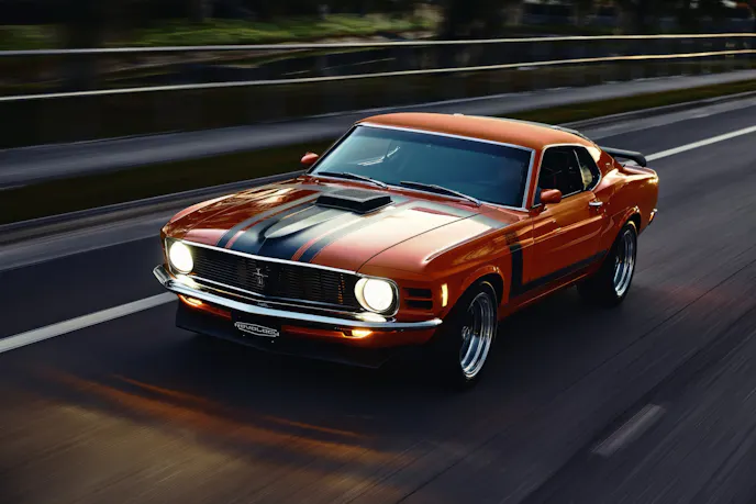 The original existed so Ford could go racing in the Sports Car Club of America Trans-Am series, and it showed. A high-revving small-block, competition-tuned suspension, functional cooling, and sleek aero made it one of the sharpest factory Mustangs of its era. For 1970, the package added more attitude with bold graphics, a decklid spoiler, and the now-signature Shaker hood.