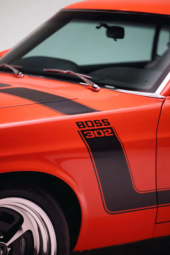 Visually, this replica stays true to form. The 1970 Boss 302’s more expressive design is fully intact, from the graphics package to the rear spoiler and louvered backlite. It carries the same presence that set it apart from the more understated Boss 429.