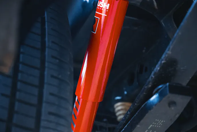 Roush’s Advanced Lowered Suspension System is the backbone of the Nitemare, and it’s engineered to make a full-size F-150 behave like something far smaller when the road starts to twist. The setup combines performance coilovers, drop spindles, twin-tube dampers, progressive-rate springs, and an upgraded sway bar. The result is a substantial drop — 3 inches up front and 5 inches out back — that lowers the center of gravity and transforms the truck’s stance from utilitarian to unmistakably aggressive.