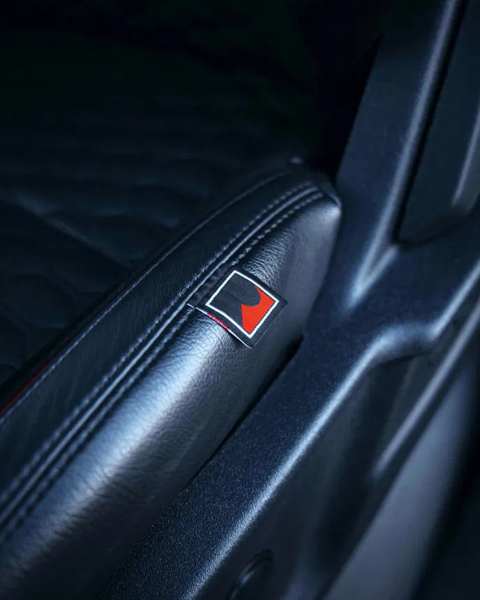 Inside, the updates are more about refinement than reinvention. A full interior carpet package gives the cabin a more finished feel, while a red carbon-fiber accent on the steering wheel adds a subtle but effective performance touch point. Serialized badging and available carbon-fiber trim reinforce that this isn’t just an appearance package.