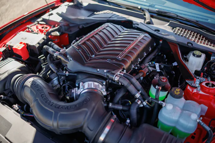 Unlike the most recent factory GT350 offerings there is no flat-plane crank or unique engine variant. Instead, the 2025 Shelby GT500 is available with either a naturally aspirated, 480-horsepower Gen 4 Coyote 5.0-liter or the same engine topped by a Shelby Performance/Whipple twin-screw supercharger that elevates its output to a brawny 810 horsepower.